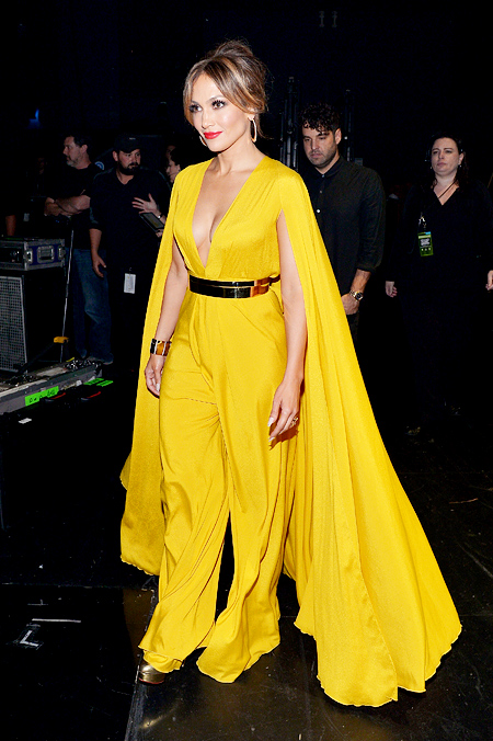 Ну и конечно же звезда вечера. Столько усилий просто невозможно не заметить и обойти стороной. Естественно среди нарядов Лопес была парочка так называемых «голых» платьев, но были и очень неплохие варианты. К примеру, многим очень понравился желтый комбинезон, который смотрелся очень солнечно и свежо. Смотрим!