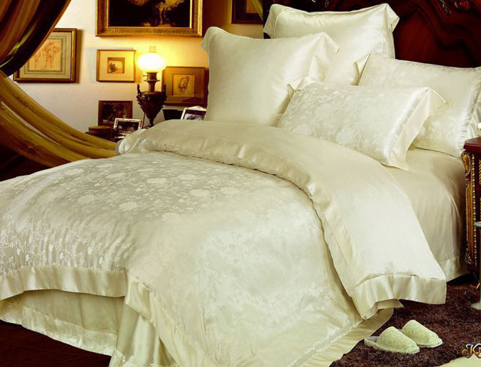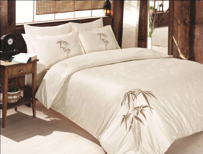 Приятная на ощупь ткань, на вид напоминающая шелк, выглядит очень шикарно и достойно. И хоть цена у нее тоже соответствующая, но вы получите качественную, красивую и долговечную вещь, которой сможете наслаждаться. А сон ваш будет поистине прекрасным.