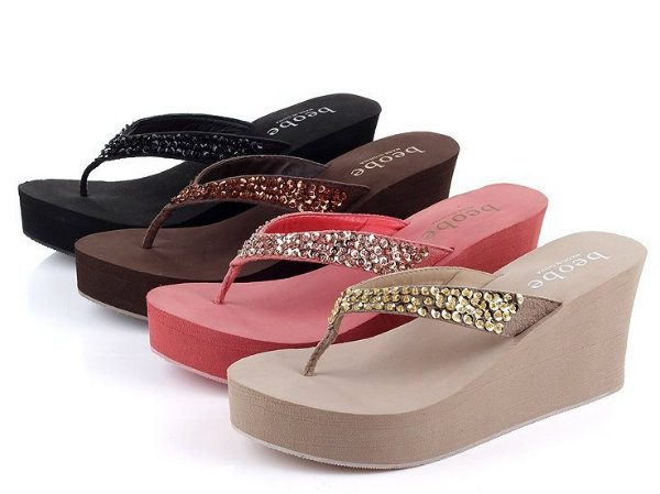 Самыми востребованными на пляже по-прежнему остаются шлепки. В этом сезоне актуальными являются шлепки на плоской подошве, особую популярность стали завоевывать шлепки на платформе и танкетке. Тренд, который достался нам с прошлого лета – это яркие цвета шлепанцев с рисунком на подошве.