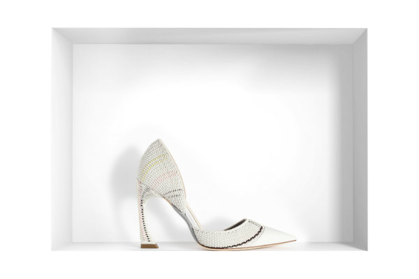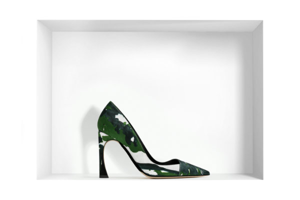 Dior удивляет в своих моделях не только заменой классического каблука на более экстравагантный вид, но еще и расцветками самой туфли. Ниже представлена модель - флора.