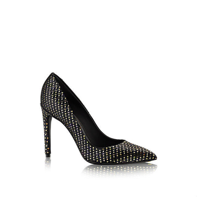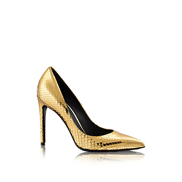 Данный бренд предлагает женщинам сиять в любое время суток, тем самым выпустив туфли для вечернего выхода в свет из кожи питона покрытые золотом и две модели расшитые паетками.